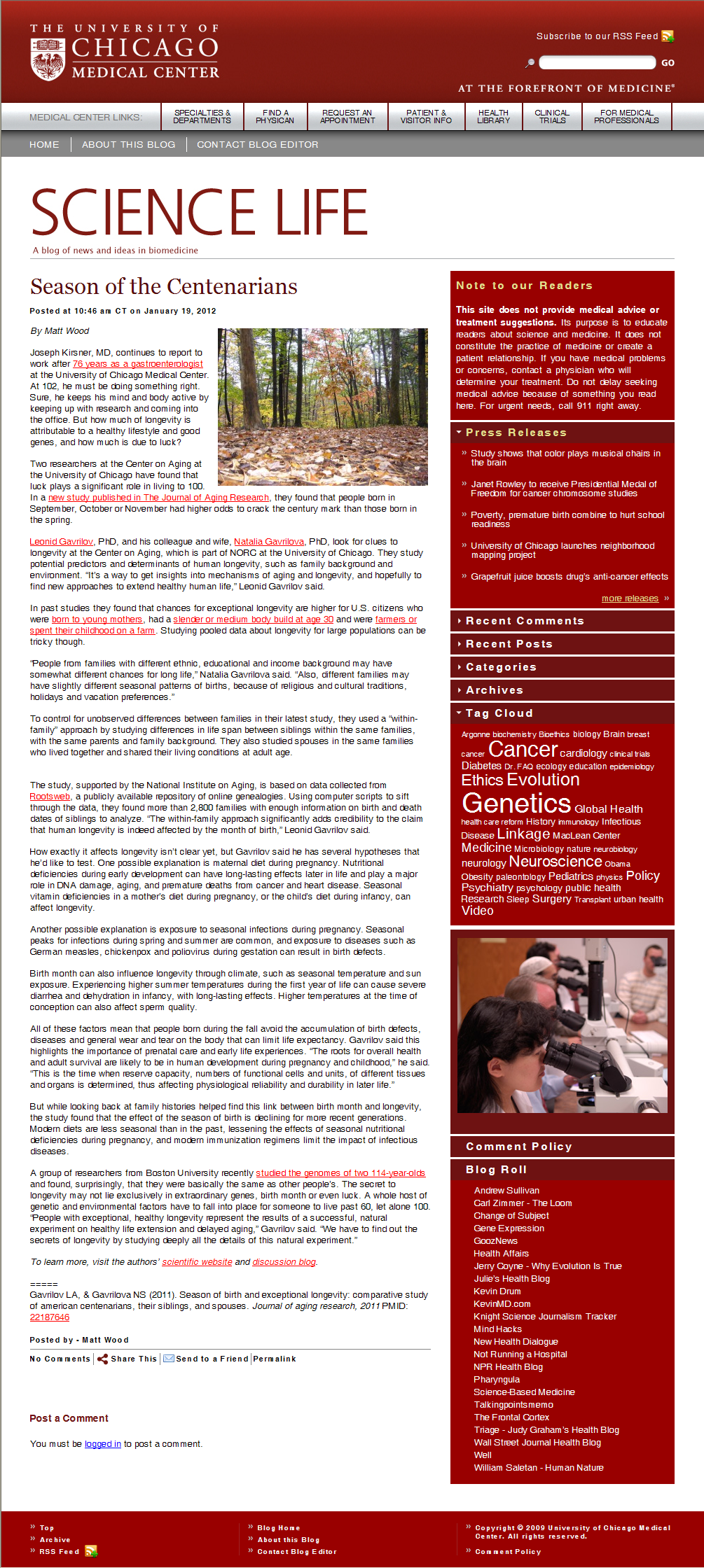 list of media coverage for our longevity studies (with weblinks to
